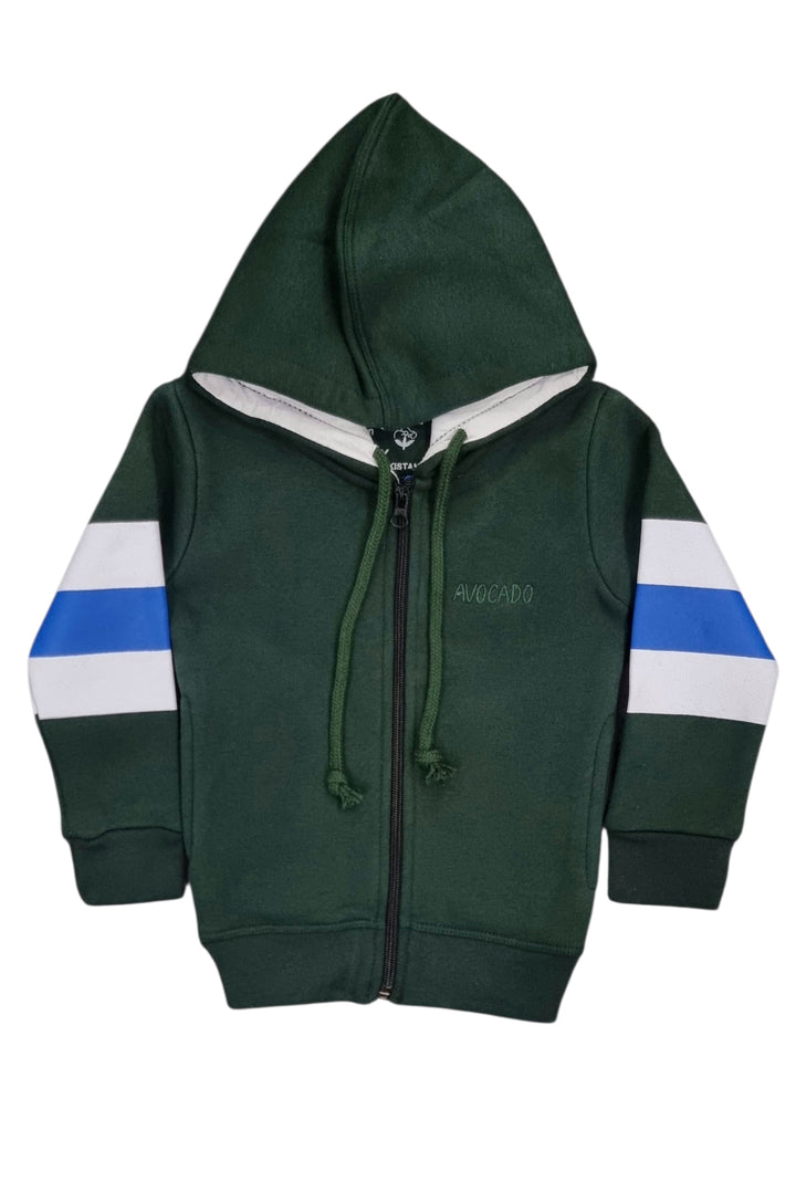 Avocado Dark Green Zip-Up Hoodie with Color Block Sleeves