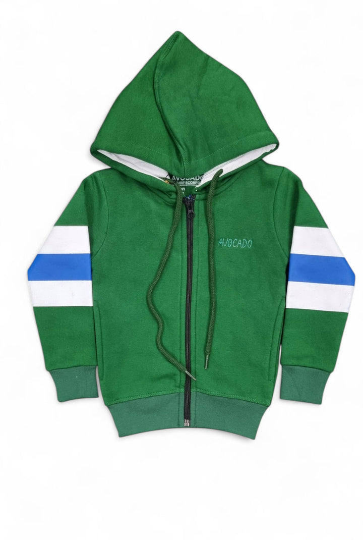 Avocado Green Zip-Up Hoodie with Color Block Sleeves