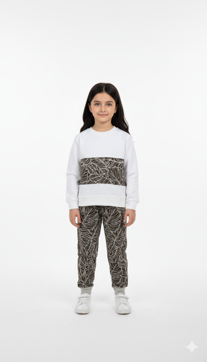 Botanical Leaf Print Fleece Sweatshirt & Trouser