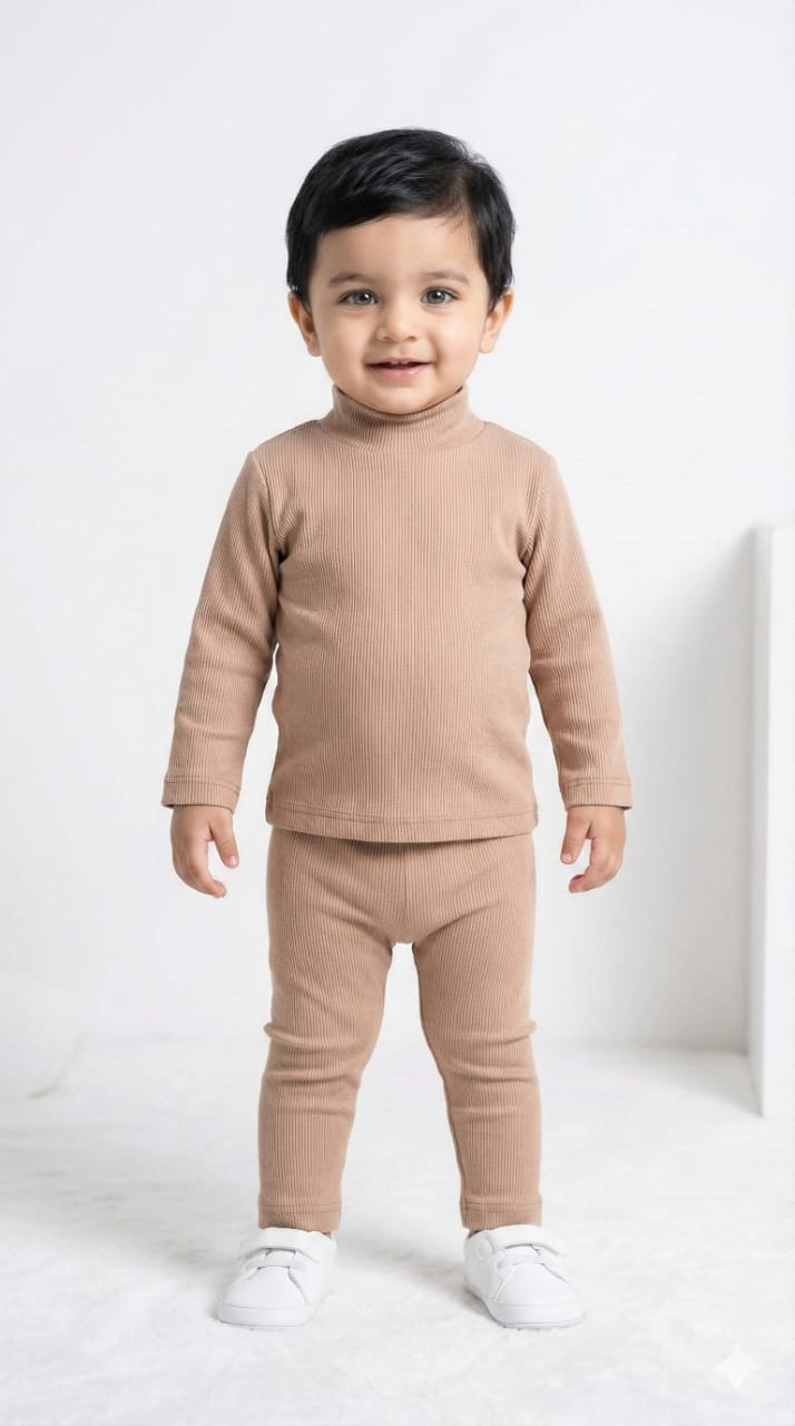 Brown Beige Ribbed Mock Neck Set Infant