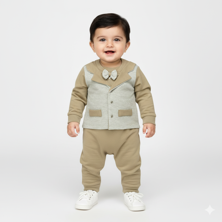 Elegant Baby Tuxedo Brown Romper with Bow Tie
