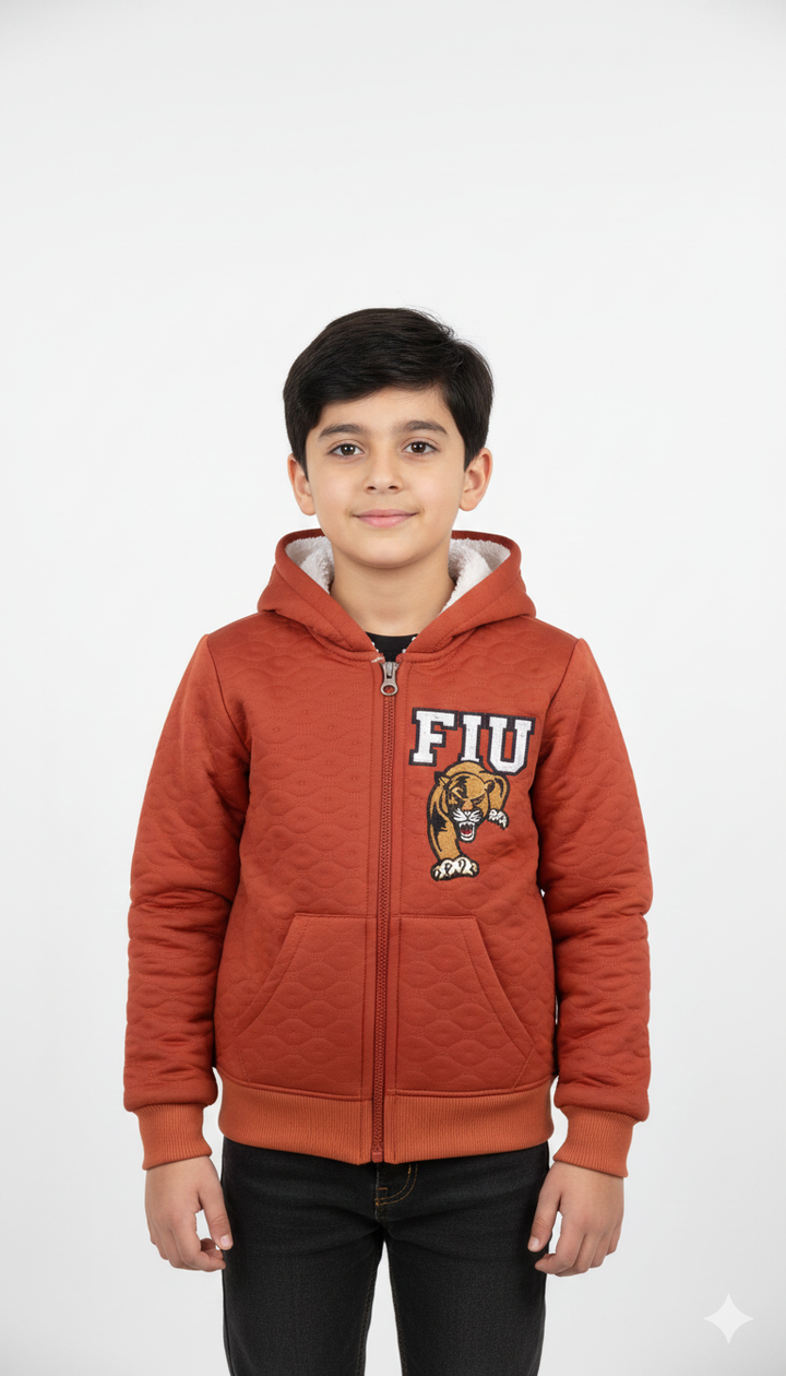 FIU Panther Embossed Fleece Red Hoodie Zipper