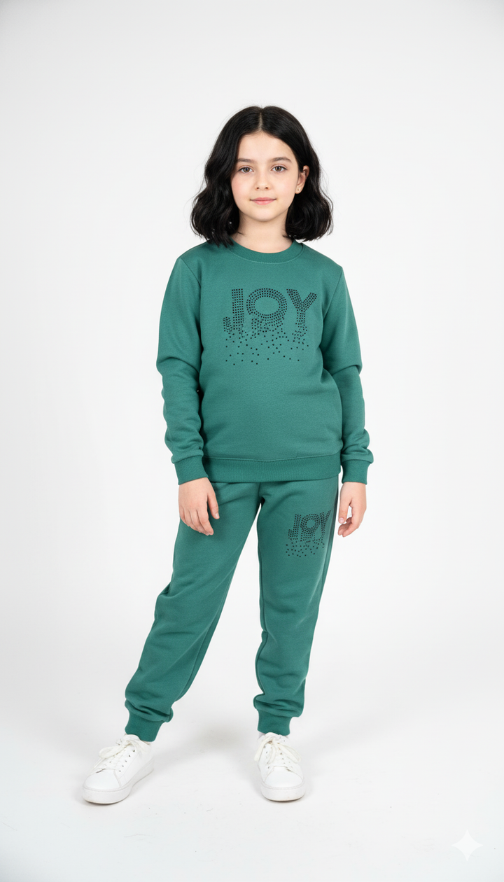 Green Joy Embellished Fleece Tracksuit