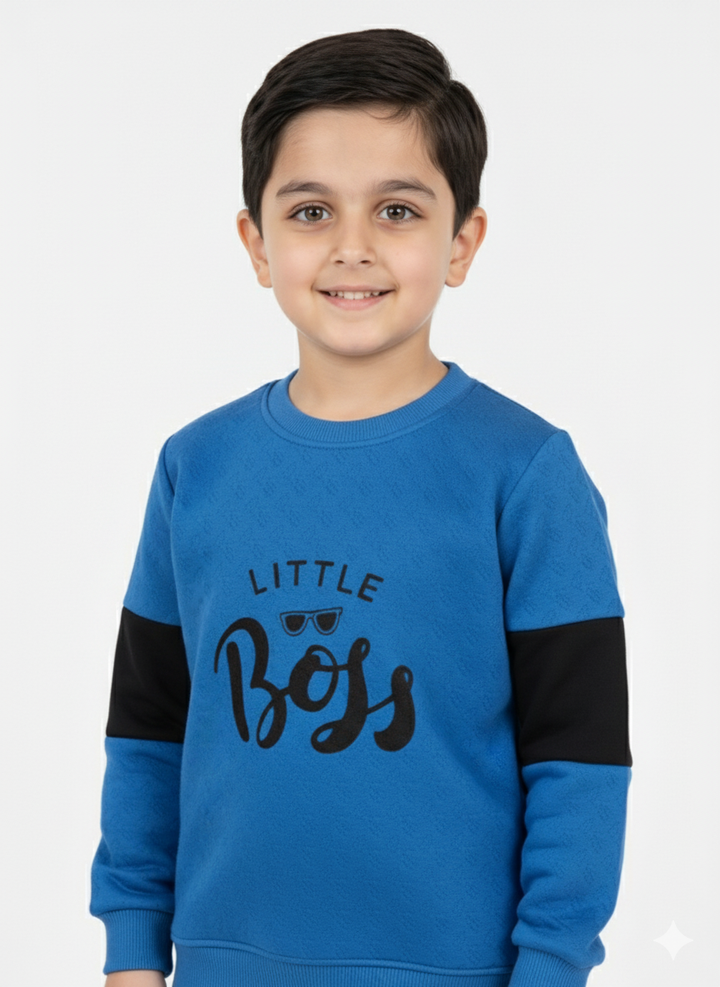 Little Boss Embossed Lose Fit Blue Sweatshirt