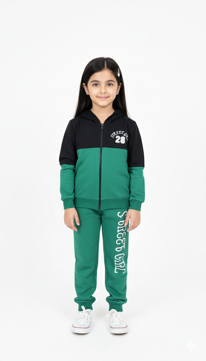 Street Girl Green/Black Panel Fleece Trouser