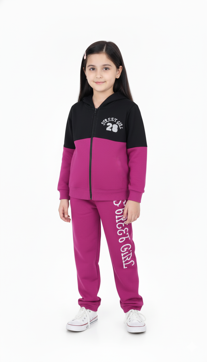 Street Girl Purple/ Black Panel Fleece Tracksuit